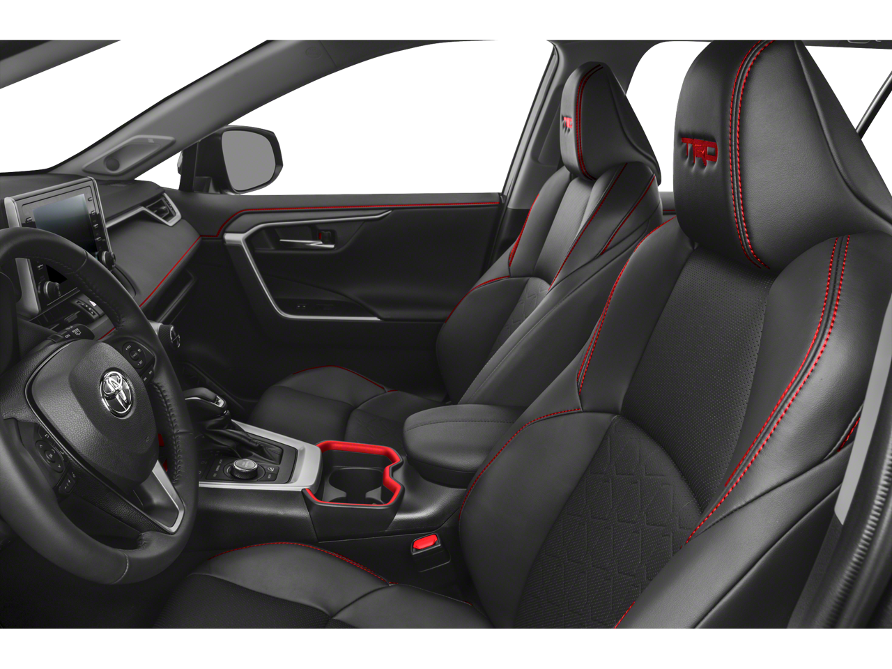 Boasting a bold and sophisticated exterior, the RAV4 TRD Off Road commands attention with its striking 18-inch matte-black alloy wheels, sleek roof rails, and distinctive TRD badging. Step inside and you'll be greeted by a spacious and well-appointed cabin, featuring premium SofTex-trimmed seats, a power moonroof, and a host of cutting-edge features that will elevate your driving experience.