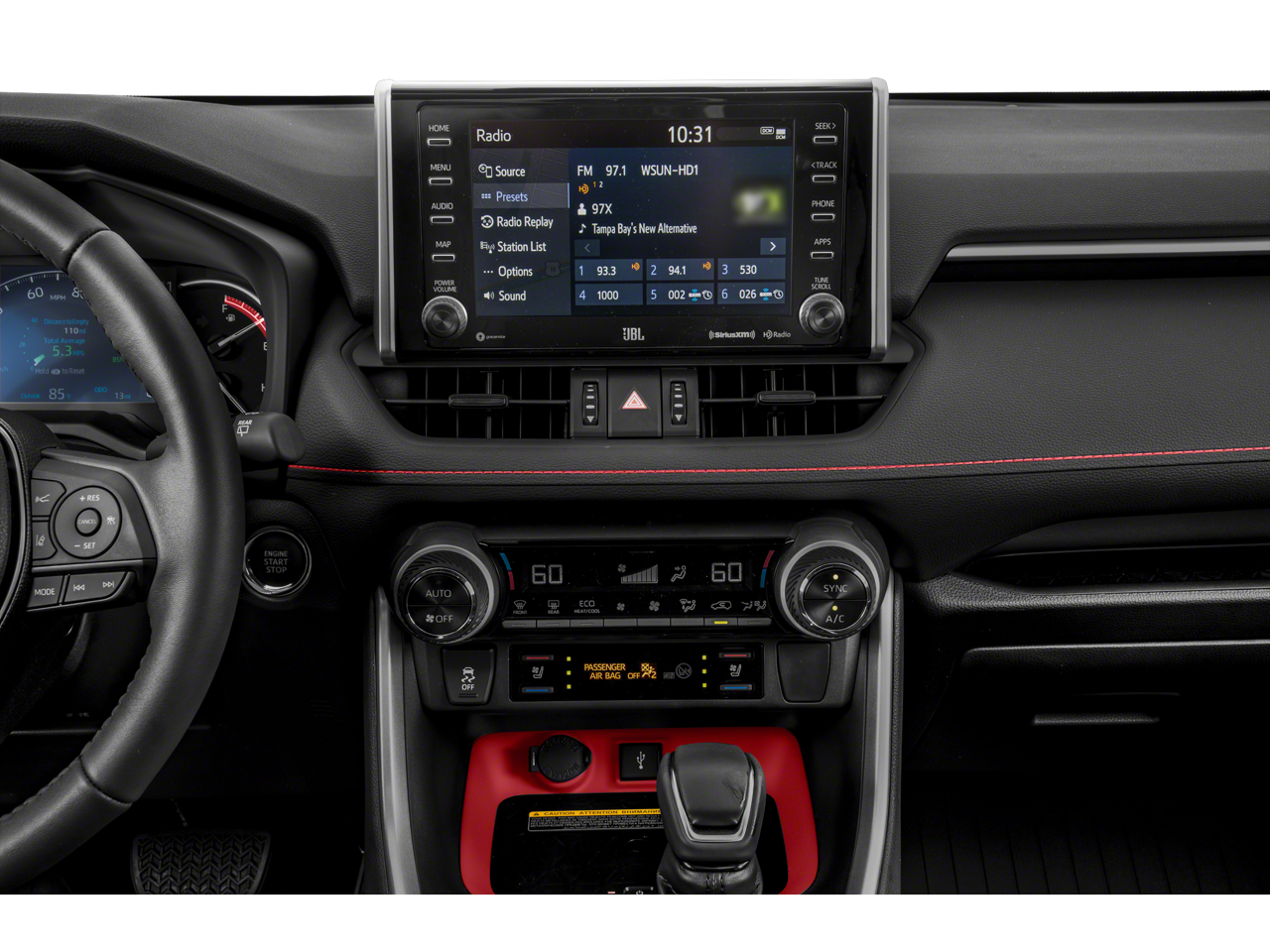 - Radio: Audio Plus -inc: 6 speakers, 8.0" touchscreen, AM/FM/HD Radio, aux port, USB media port, 4 USB charging ports, advanced voice recognition, hands-free phone capability and music streaming via Bluetooth® wireless technology, Scout GPS link compatible w/up to 3-year trial, Siri Eyes Free, Apple CarPlay compatible, Amazon Alexa compatible, Android Auto, SiriusXM w/3-month all access trial, Toyota connected services - Safety Connect w/3-year trial, Service Connect w/3-year tria, SiriusXM w/3-month all access triall, Remote Connect w/6-month trial, Wi-Fi Connect powered by Verizon w/up to 2GB within 6-month trial, See toyota.com/entune for details