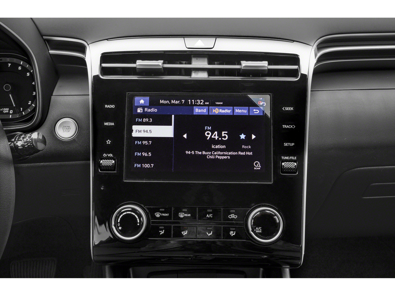 - Radio: AM/FM Audio System -inc: low-cost display audio, 8" color touchscreen, 6 speakers, SiriusXM satellite radio w/3-month trial subscription, HD Radio, Blue Link connected car system, Bluetooth®, wireless Apple CarPlay and Android Auto and dual front high-power USB outlets