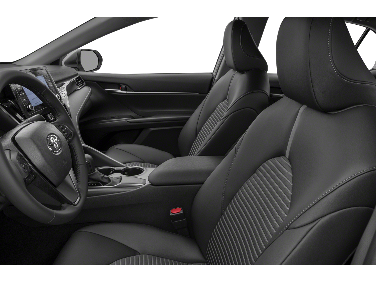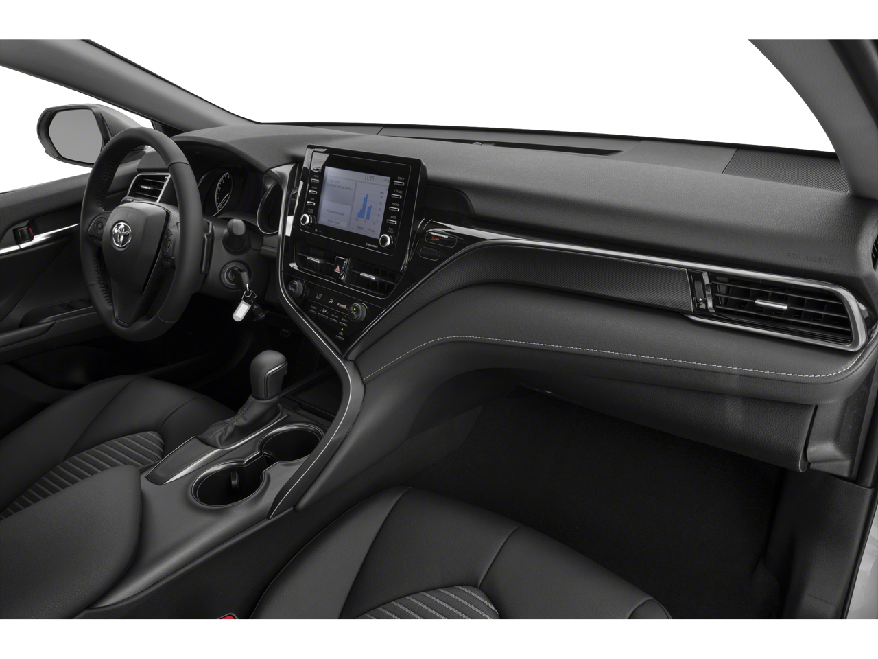 The interior of this Camry SE is equally impressive, with a stylish and well-appointed cabin. The split-folding rear seat and front center armrest offer versatility and comfort, while the fabric seat trim with Sport SofTex accents add a touch of sophistication.