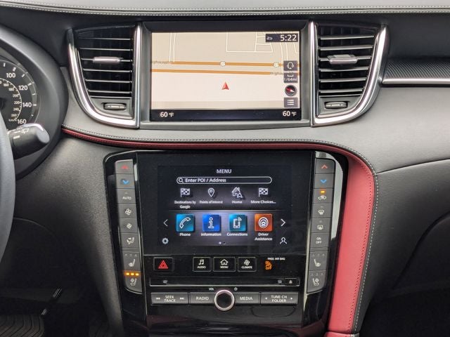 - Radio: Bose Premium Audio System -inc: 12 speakers, metallic speaker grilles on tweeters, INFINITI InTouch, INFINITI InTouch services, INFINITI InTouch dual display system w/upper 8" and lower 7" HD touch screens, wireless Apple CarPlay, Android Auto, HD radio technology, SiriusXM radio w/advanced audio features and 90-day complimentary trial, INFINITI voice recognition, Siri Eyes Free, Wi-Fi hotspot, active noise cancellation, navigation w/3D building graphics, 5 year complimentary access to premium traffic and MapCare, SiriusXM Traffic w/3 month complimentary trial access to real-time traffic information and SiriusXM Travel Link w/3 month complimentary trial access to weather, fuel prices, stock prices, sport scores, movie listings and parking