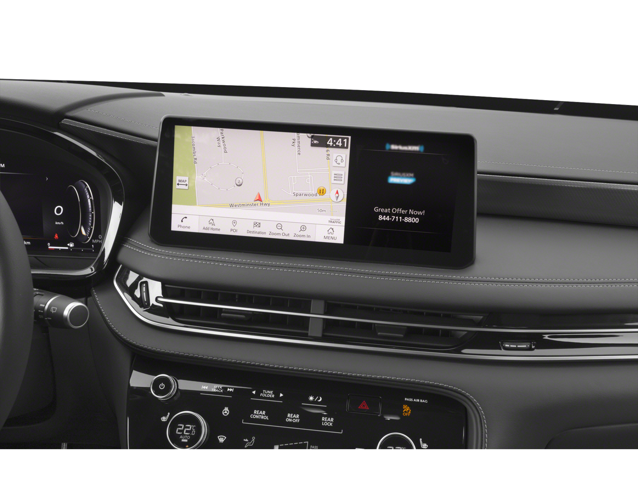 - Radio: AM/FM Audio System -inc: 9 speakers, INFINITI InTouch 12.3" interactive display w/navigation, wireless Apple CarPlay w/integration, Android Auto, Siri Eyes Free, Google Assistant, INFINITI voice recognition, Bluetooth® hands-free phone, HD Radio technology, WiFi hotspot and SiriusXM radio
