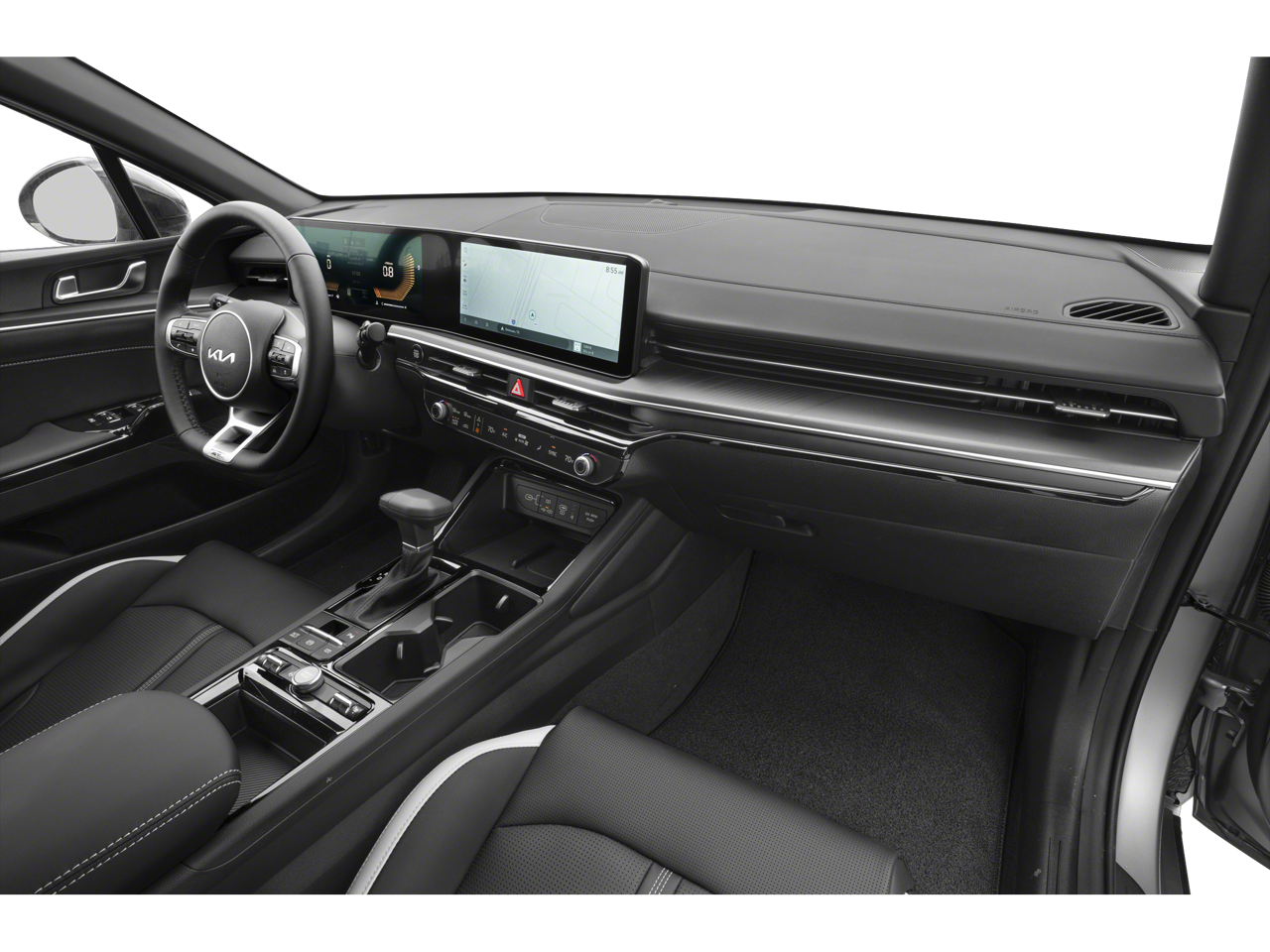 The interior of the K5 GT-Line is a true sanctuary of comfort and convenience. Sink into the heated front bucket seats and enjoy the seamless integration of the 6-speaker audio system, complete with SiriusXM radio and steering wheel-mounted controls. Stay connected with the Kia Connect emergency communication system, and let the dual-zone automatic climate control keep you and your passengers in perfect comfort.